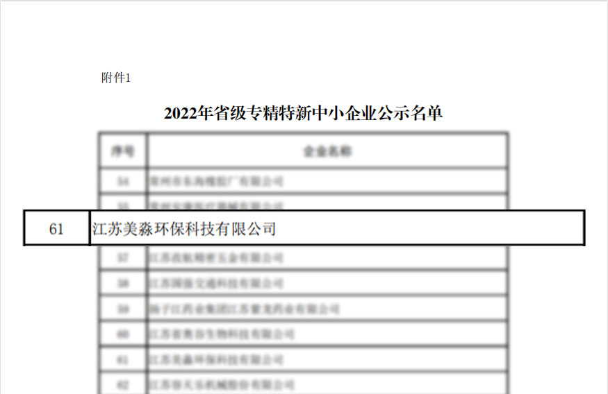 喜報丨美淼環(huán)保入選首批江蘇省2022年專精特新中小企業(yè)